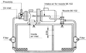 centralized lubricating systems. The oil mist is generated by a buit-in sprayer